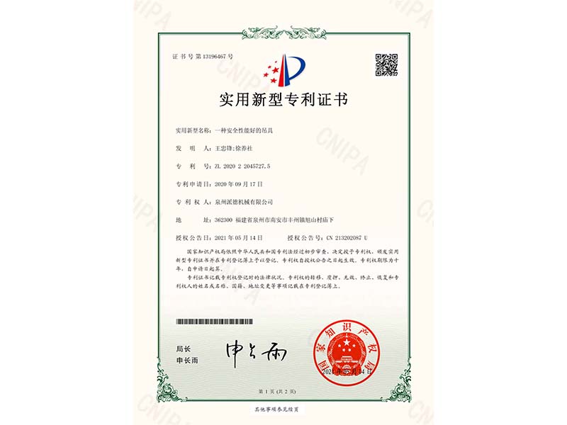 Patent certificate